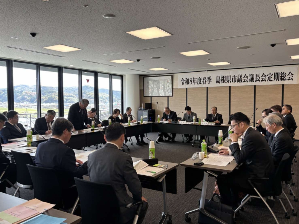 議会ウォッチ 全国自治体病院経営都市議会協議会正副会長・監事・相談役会議(R8.4.9)春の全国交通安全運動一斉行動出発式(R8.4.8)令和8年度春季島根県市議会議長会定期総会(R8.4.7)山陰道 三隅・益田道路開通式(R8.3.28)総合交通対策特別委員会(R8.3.27)新内藤川・赤川対策協議会(R8.3.26)議会運営委員会(R8.3.23)議会だより感謝状贈呈(R8.3.23)